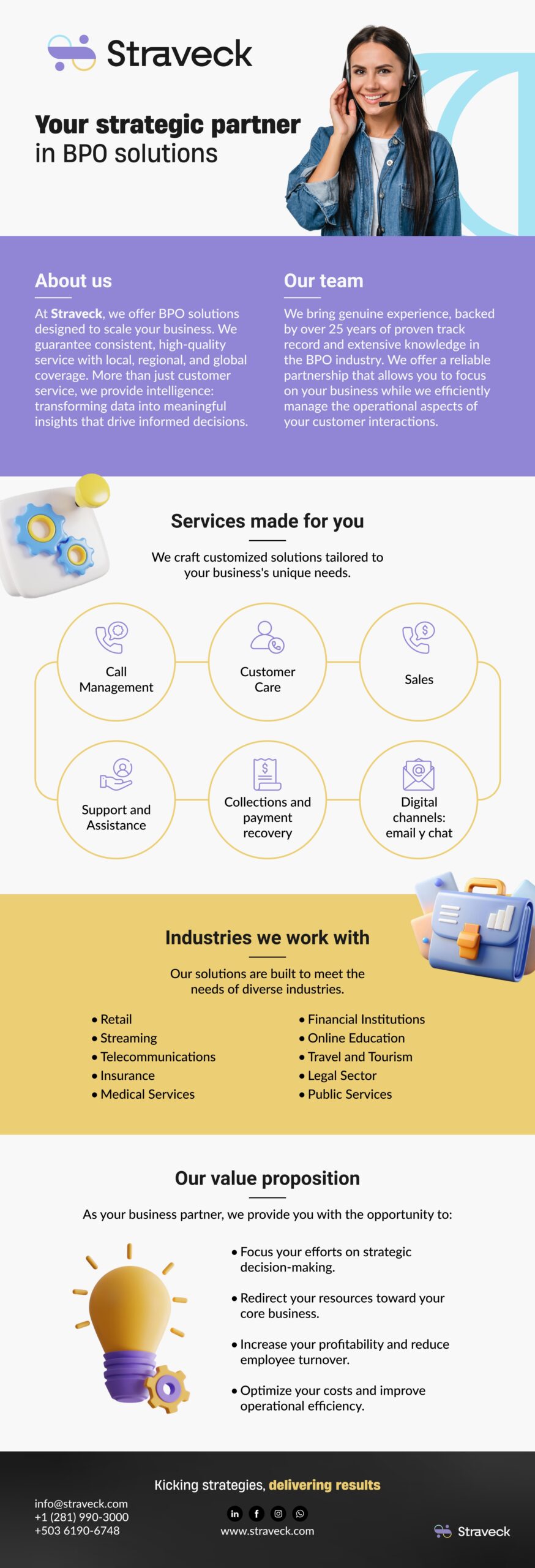 - Solutions and needs for your business, including payment collection and recovery, call management, customer service, support, and business assistance.